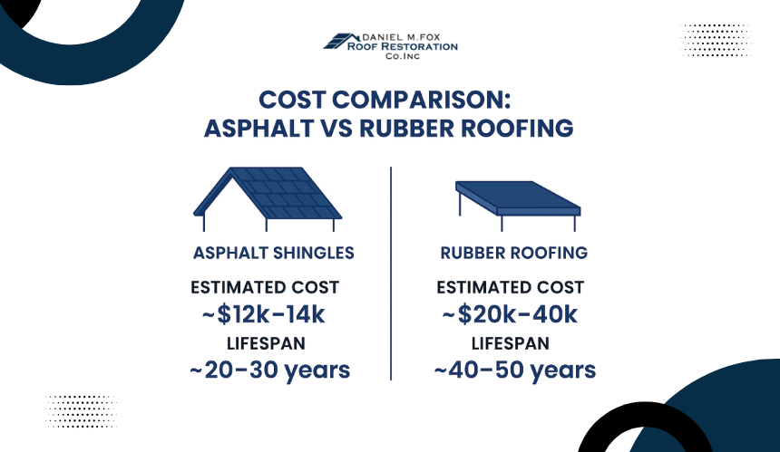 The higher up-front cost of rubber roofing may be offset by longer service life and better resistance to moisture and freeze-thaw damage.