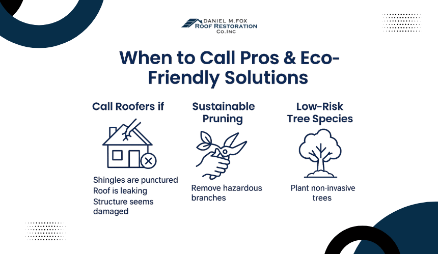 Tree-related roof issues can quickly escalate beyond what homeowners can safely handle. A roofer should be contacted if branches have punctured shingles, water is leaking indoors, or the roof structure looks compromised.