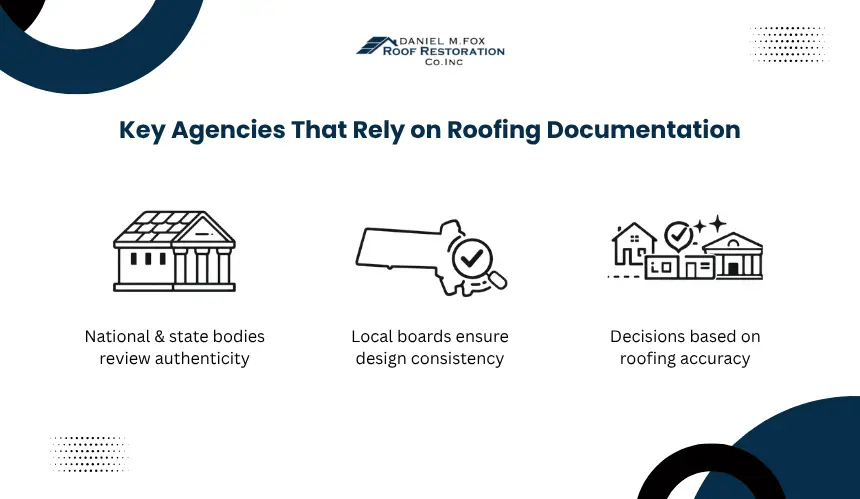 Multiple preservation agencies review roofing documentation to determine whether a property qualifies for historic recognition. Each agency evaluates different aspects of the roof, from architectural accuracy to material continuity, and these assessments often influence the final eligibility decision.